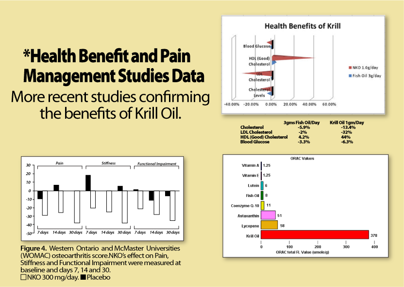 Not only does it effectively LOWER your cholesterol numbers, Krill Oil also gives a 10% boost to your “good” cholesterol numbers (44% vs. 4.2%).